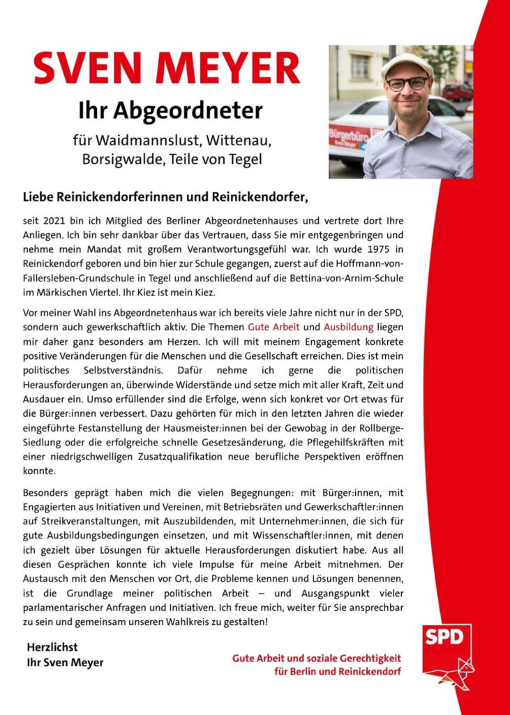 Sven Meyer - Ihr Abgeordneter für Wittenau, Waidmannslust, Borsigwalde und Tegel