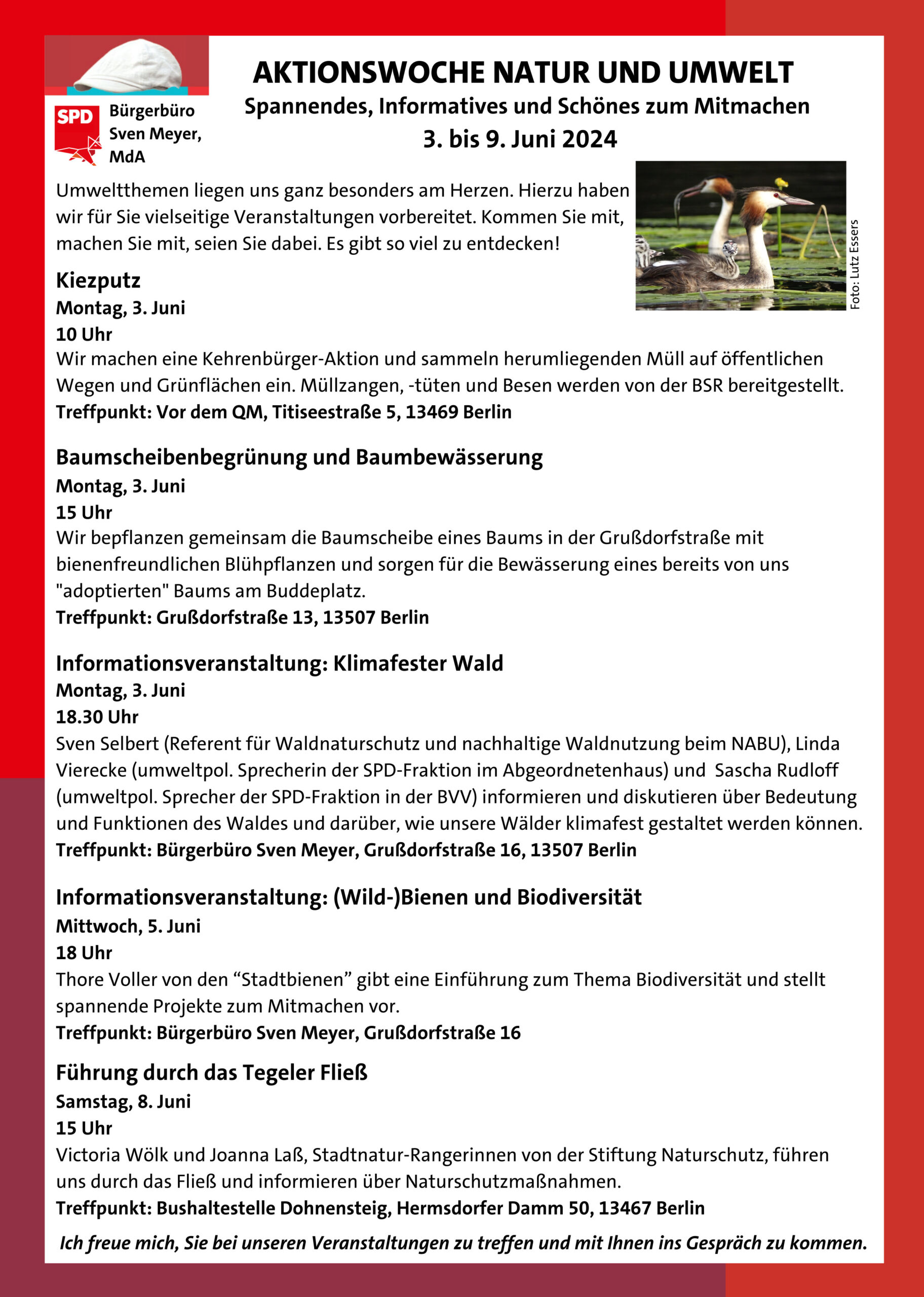 Auch in 2024 freuen wir uns, Ihnen ein umfang- wie lehrreiches Programm zum Thema Umwelt anbieten zu können. Hatten wir im letzten Jahr den Schwerpunkt rund um unser Wasser und dessen Bedrohung durch unseren expansiven Umgang damit, betrachten wir in diesem Juni zwei andere Faktoren, die für den Erhalt unserer Biosphäre unverzichtbar sind.